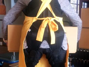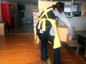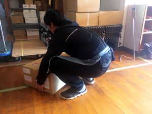 着物・ドレスなど、衣裳のメンテナンスや保管、管理されているお客様にサポートジャケットをご購入いただきました。衣裳が入っている重い段ボール箱を移動したり積み替える作業が多く、作業員の腰への負担を軽減する為に採用いただきました。