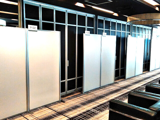 大規模な学会の展示コーナーにて、ポスター等の掲示物を貼りだしたいとのご相談をいただきました。また、宿泊客のご迷惑にならない様に、学会当日にできるだけ早く設営し、閉会後も速やかに撤去して欲しいとのご要望をいただきました。