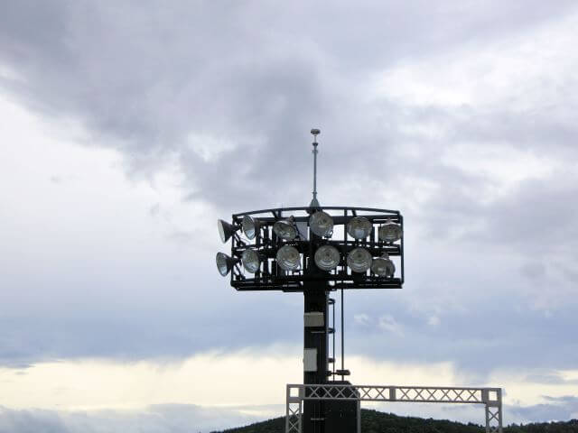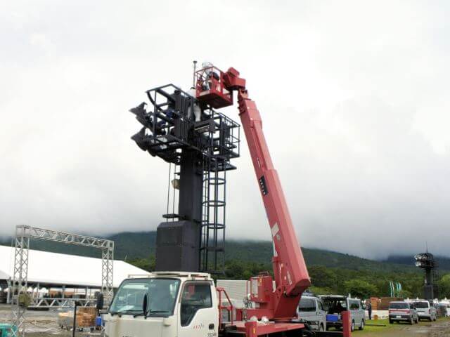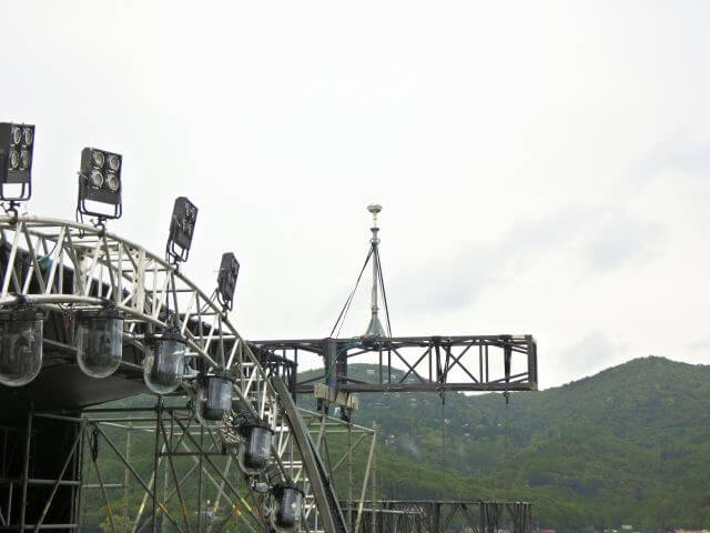 避雷ドームは照明棟に2台、仮設のメインステージに2台、落雷予報時にアームを伸ばして使用する高所作業車に2台設置させていただきました。