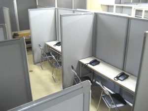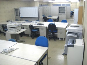 選挙活動として借りられた事務所に、オフィス机、椅子など事務所備品一式から、パソコン、コピーFAX複合機などOA機器と電話・LAN回線の接続工事、入り口付近には電気ストーブを設置した寒さ対策まで、レンタル商品の手配から設置まで全てお任せいただきました。