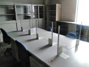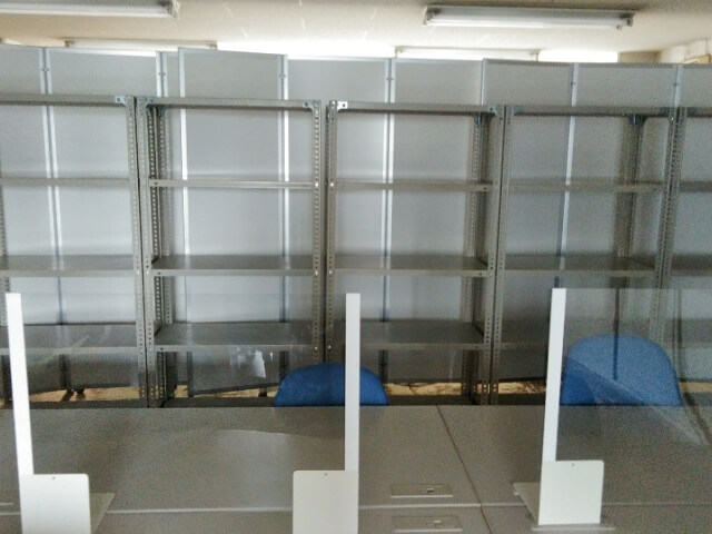 業務中の感染防止対策として、机と机の間に飛沫防止パネルを設置していただきました。