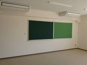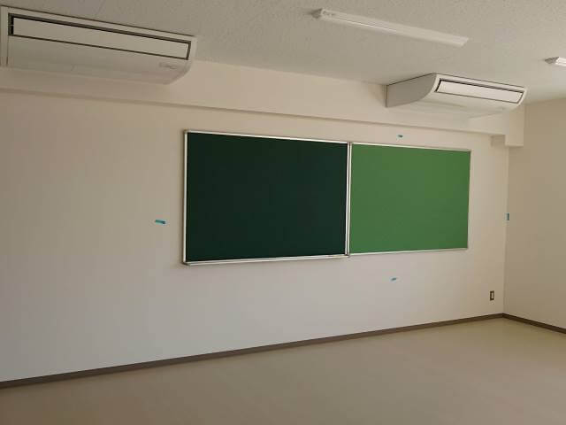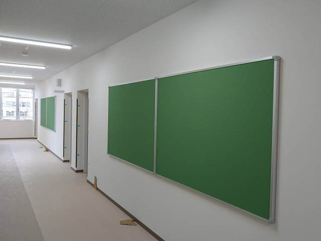 机や椅子などの備品は、旧校舎から仮設校舎へ移動して使用されるとの事で、黒板など取り外しが困難な学校用備品をご利用いただくことになりました。