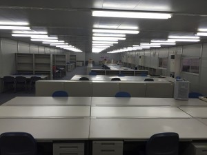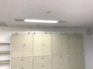 新規開設する50名規模のプロジェクトルームに、オフィス机、椅子、書庫などのオフィス備品一式をレンタルでご利用いただきました。書庫には地震などによる転倒を防ぐため、地震対策グッズを使用した耐震補強を行いました。