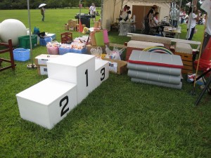 小さなお子様から大人まで楽しめる運動会の会場を設営いたしました。トラックのライン引きから競技場のロープ張り、入場門のエアーアーチの設置など多くの作業を短時間で行いました。また本部席や屋台のパイプテント、音響設備、スタートピストル、リレーバトン、跳び箱、くぐり梯子、大玉ころがし、得点板などの競技用器具、フライヤーやお好み焼き器などの厨房器具などもレンタルにてご利用頂きました。