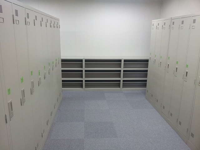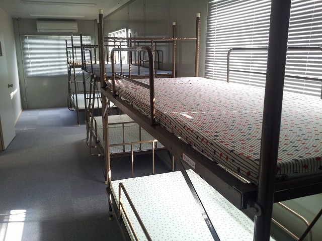 工事現場の仮設事務所に30人分のデスク・書庫、更衣室にロッカー・鉄パイプベッド、会議室に会議テーブル・折畳み椅子を搬入・設置させていただきました。