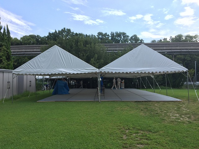 夏場の開催のため、暑さ対策として仮設の控室にはスポットクーラーをご利用いただきました。