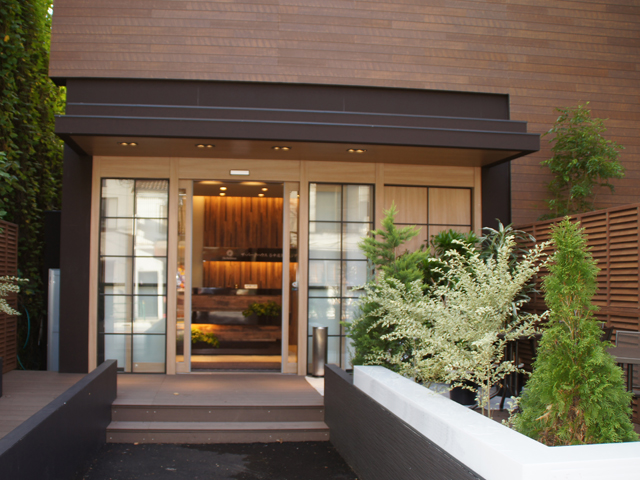 マンションギャラリーのエントランスは、お客様が予定していた植栽に加え、当社から追加の植栽をご提案し、ご希望されていた森のイメージを演出することができました。