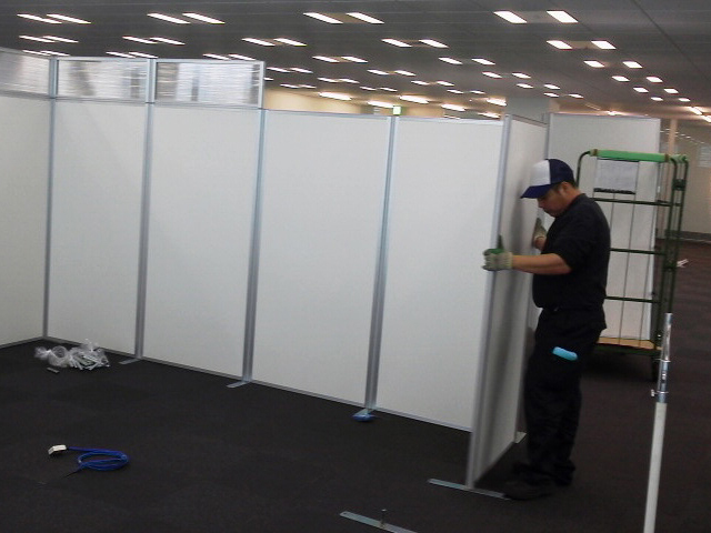 Eパネルは、組立てに工具を必要としないため、設置時間が短時間で完了したことや、レンタル使用期間中にお客様ご自身でもレイアウト変更が可能であったことから、大変ご好評をいただきました。