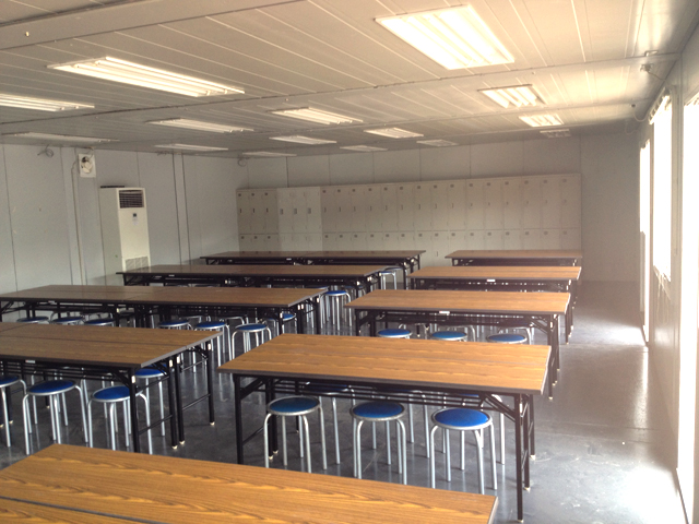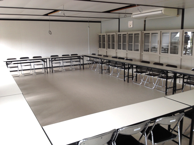 建設工事現場にある2F建ての仮設ハウス内で使用されるオフィス備品を納品・設置いたしました。仮設ハウス内の事務スペース、作業員詰所、応接室、更衣室、会議室など各エリアに、平机、机ワゴン、チェア、書庫、会議テーブル、ロッカー、エアコンなどの備品をレンタルでご利用いただきました。