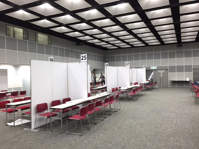 説明会当日の朝早くから、限られた時間内で会場の設置を行い、同日、説明会終了後に撤去を行いました。