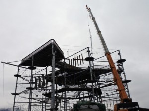 落雷対策の御提案に何度か現地を訪問させていただきました。まだ巨大アトラクションの建設前でしたが、施設の規模や形状などのイメージを図面や模型で確認させていただきながら、施設全体に雷が落ちないように設置する高さを計算し、機種の選定と設置方法を検討しご提案させていただきました。