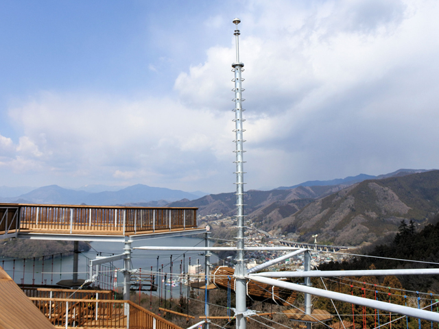 神奈川県相模原市の遊園地「さがみ湖リゾートプレジャーフォレスト(富士急グループ)」内の巨大アトラクション「マッスルモンスター」を落雷から護るため、避雷針に関するお問合せをいただきました。アトラクションは標高370mの高台にあり、さらに屋上の展望部分が高さ16m(5階建てビルの高さに相当)もある事から、周囲に建物がなくアトラクションへの落雷の危険性が高いと考えておられました。さらに、天候の急変等で落雷の恐れが出たときに、ご利用中の大勢のお客様が一斉に移動した際、パニックによる転落等の二次被害を危惧されていました。