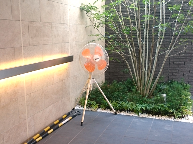 8月の猛暑の中、エントランスに多くの人が集まるとのことで、お客様は熱中症などの対策で悩んでおられました。