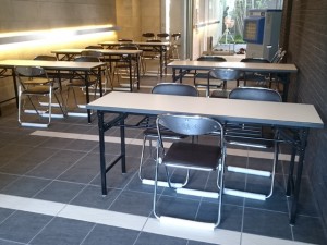 テーブルと椅子には、床にキズが付かないように養生し設置いたしました。