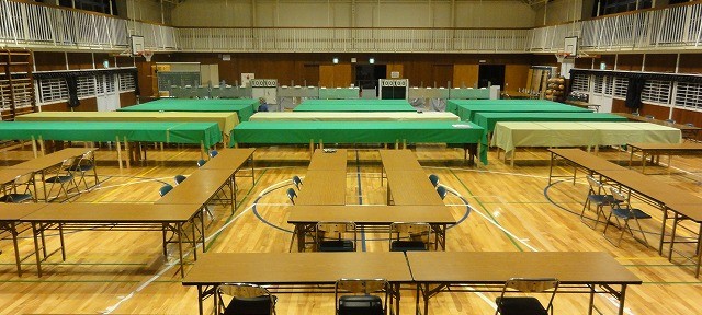 学校の体育館やイベントホールに設けられた、選挙の投票所、開票所で必要な長机、折りたたみ椅子などをレンタルでご利用いただきました。立った状態で作業がしやすくなるハイテーブルをご利用いただくなど、様々なお客様のお悩みにお応えした事例をご紹介いたします。