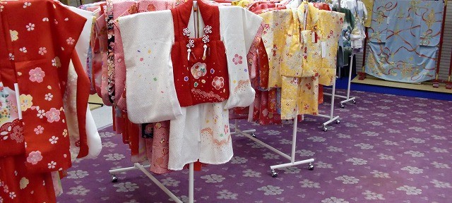 七五三、十三参りなどの晴れ着をレンタルでご利用いただいた事例をご紹介いたします。店舗や特設会場に衣装を展示して、ご来場いただいたお客様に自由にご試着いただきながら衣装をお選びいただきました。お参りの当日には、衣装の着付けやヘアメイクもご利用いただいております。