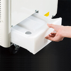 ■本体裏側下部に除湿した水を溜めるドレンタンクがあります。梅雨時期や湿度の高い場所は除湿水量が増えますので定期的にたまった水を捨ててください。