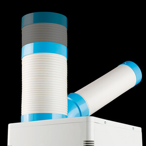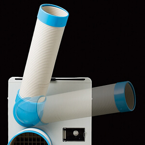 外気を本体に吸い込み、本体内部で冷却しダクトから冷気となって送風される部分的冷却装置の事を言います。一般的なルームエアコンは室内機・室外機に分かれていますがこちらの商品は室内・外機が一体となったイメージです。冷風ファン・排気ファンにシロッコファンを採用する事でダクトを延長し、排気熱を室外に排気できます。