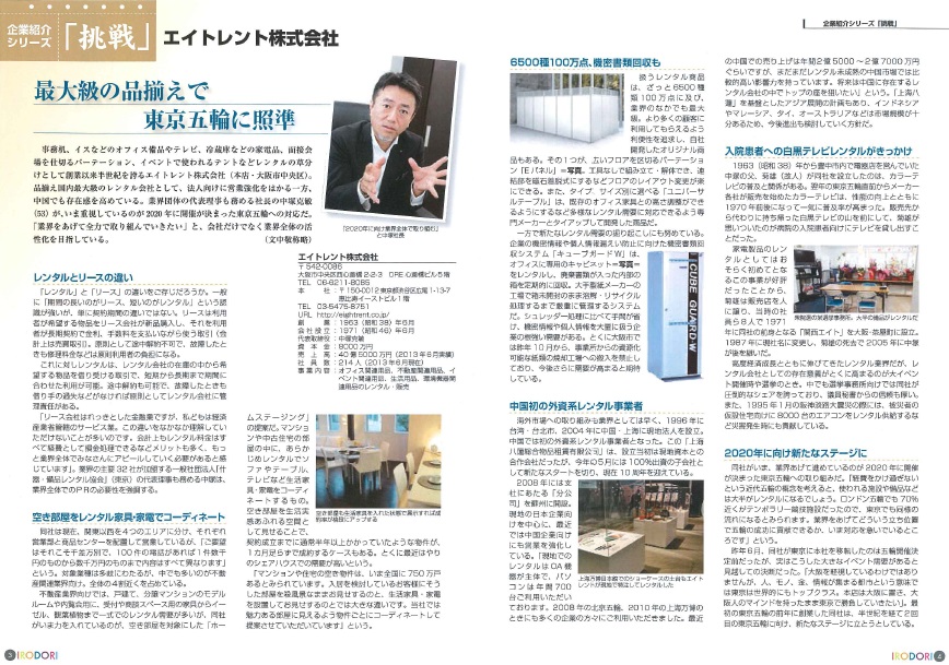 『彩 IRODORI(月刊情報誌)』に当社のレンタルサービスに関する記事が掲載されました