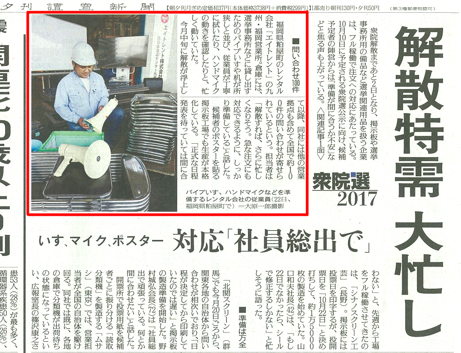 ■概 要:当社の選挙用備品レンタルサービスに関する記事が掲載されました。